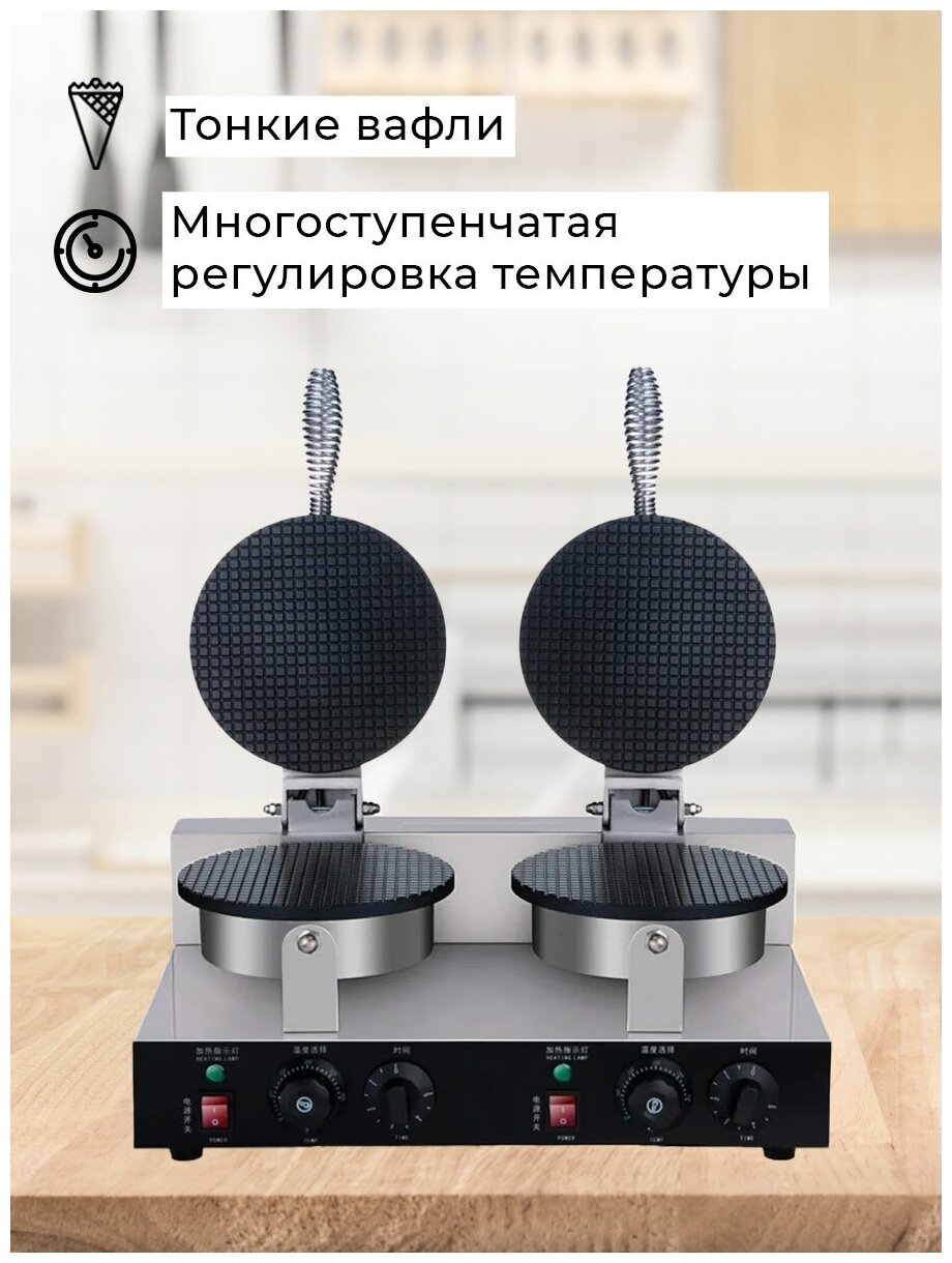 Type: waffle iron, number of containers: 2, maximum operating temperature: 300 °C, control: mechanical, power consumption: 2 kW, installation: tabletop