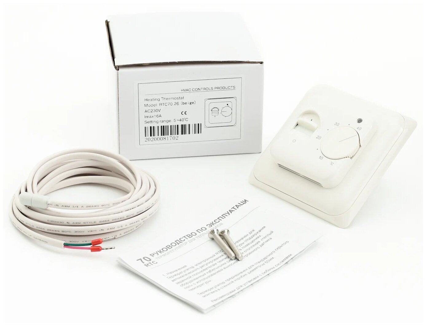 Control type: mechanical, maximum load: 3600 W, minimum temperature: 5 °C, maximum temperature: 40 °C, underfloor heating temperature control, underfloor heating sensor: included, communication type: wired