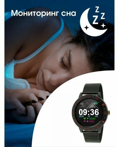 Type: smart watch, features: waterproof, measurements: calorie monitoring, sleep monitoring, physical activity monitoring, stopwatch, blood oxygen level, heart rate monitor: built-in, screen functions: touch screen