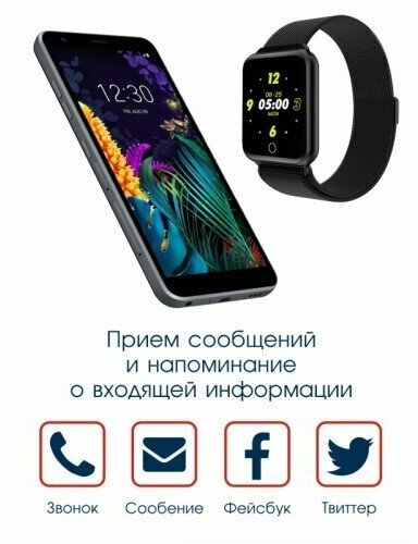 Type: smart watch, features: waterproof, Compatible with OS: Android, iOS, measurements: calorie monitoring, sleep monitoring, physical activity monitoring, stopwatch, blood oxygen level, heart rate monitor: built-in, function