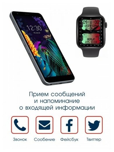 Type: smart watch, features: waterproof, Compatible with OS: Android, iOS, measurements: calorie monitoring, sleep monitoring, physical activity monitoring, stopwatch, blood oxygen level, heart rate monitor: built-in, function