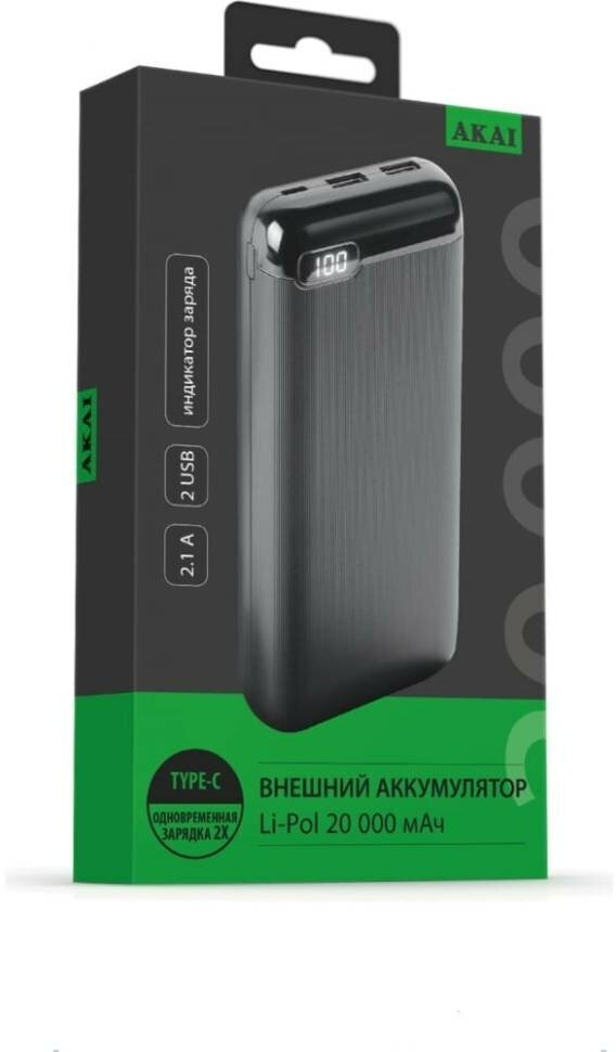 Capacity: 20000 mAh, max. output current: 2.10 A