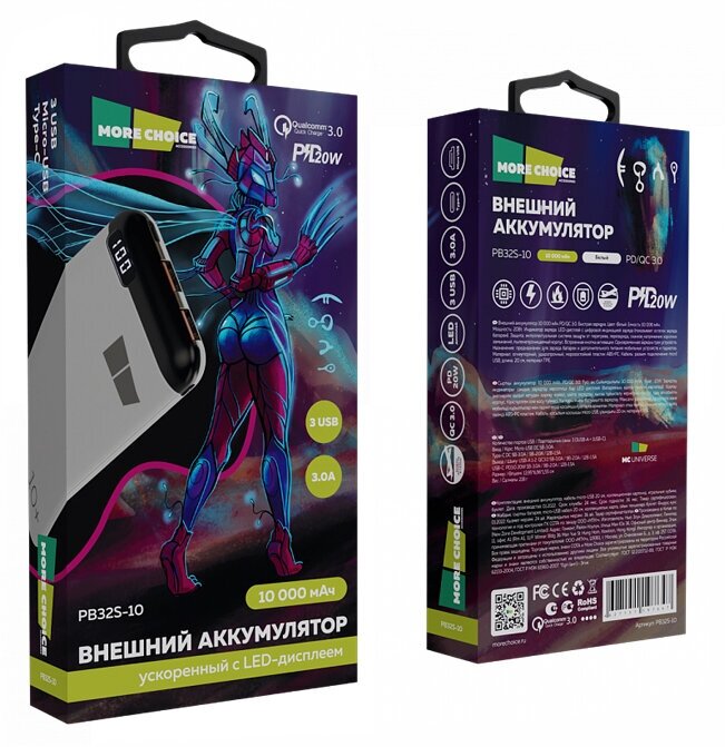 Capacity: 10000 mAh, compatibility: fast charging, laptop charging, max. output current: 3A, weight: 218g