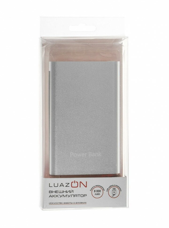 External LuazON, 8000 mAh, USB, 1 A, indicator, slim body, metal, gray