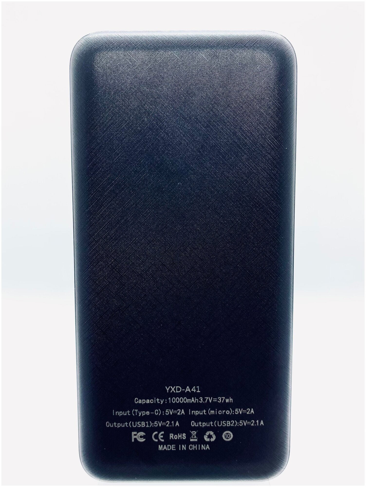 Capacity: 10000 mAh, max. output current: 2.10 A, weight: 200 g