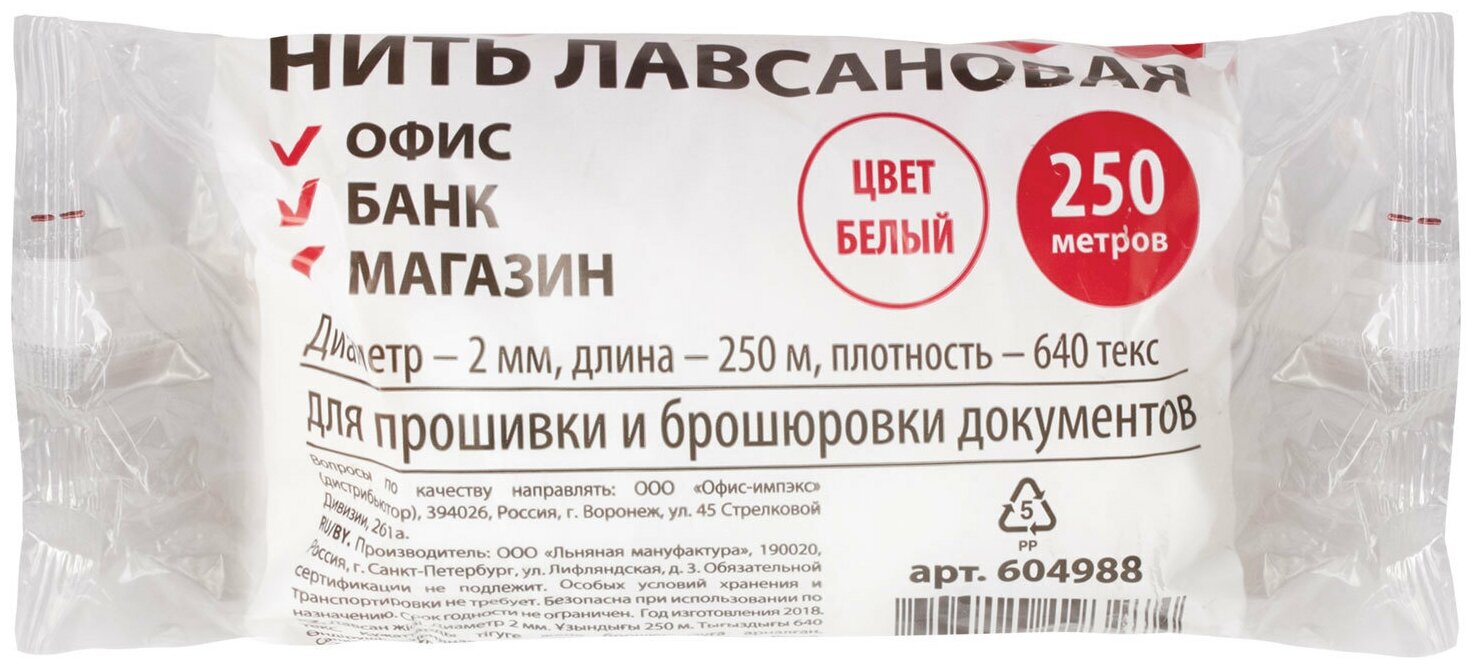 Breaking load - 18 kgf, linear density: 640 tex, material: lavsan