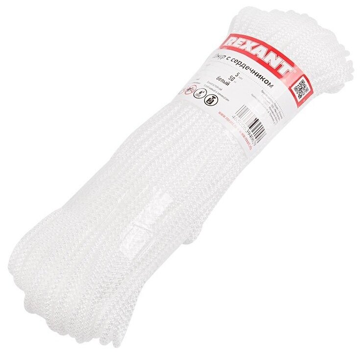 Core cord 5 mm 50 m white Rexant, 1pc, REXANT, 77-1550-1