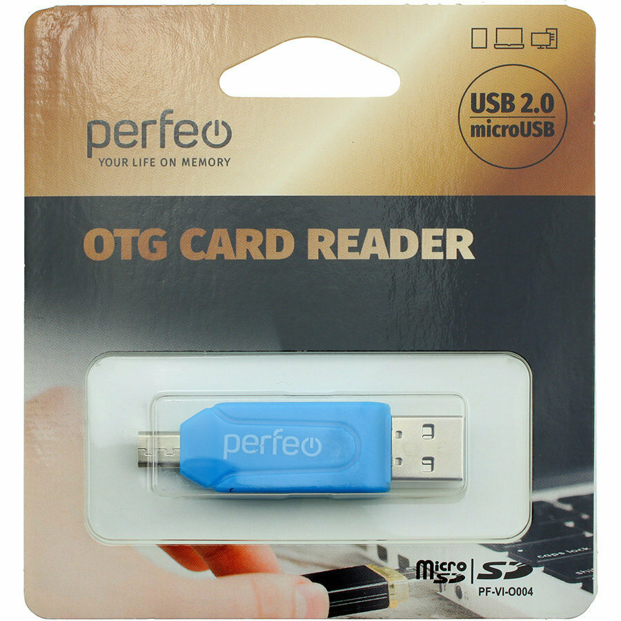 Perfeo Card Reader SD/MMC+Micro SD+MS+M2 + adapter with OTG PF-VI-O004-blue