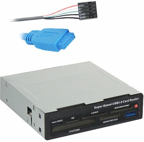 Connectivity: USB 3.0 Type A, SD, miniSD, microSD, MS, xD-Picture, Compact Flash, Memory Stick Duo, installation in a 3.5-inch bay
