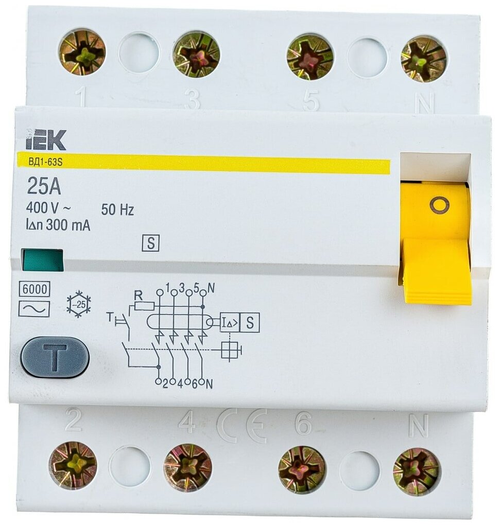 Leakage current: 300 mA, number of poles: 4, rated voltage: 380 V, selective, type: AC, protection class: IP20