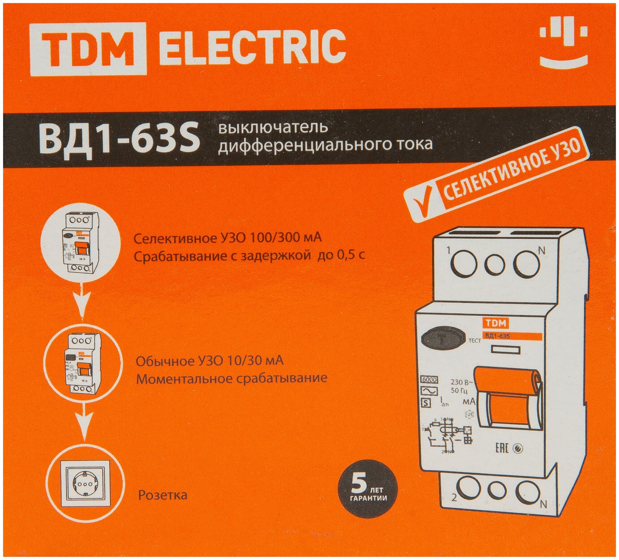 RCD TDM ELECTRIC 100mA type S VD1-63S 2 poles