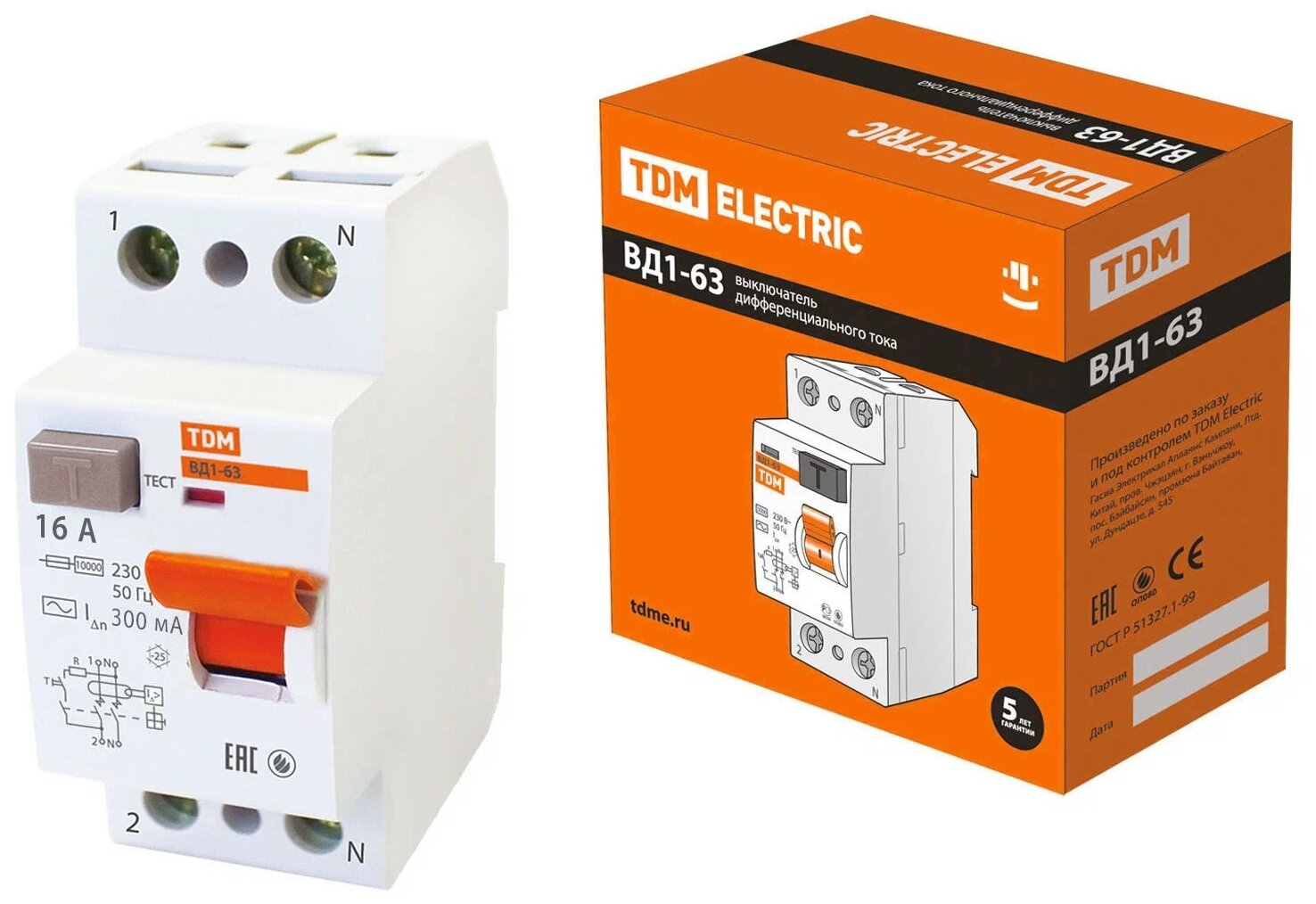 RCD TDM ELECTRIC 300mA type AC VD1-63 2 poles