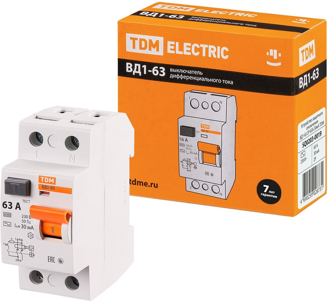 RCD differential switch VD1-63 2P 40A 30mA TDM SQ0203-0013