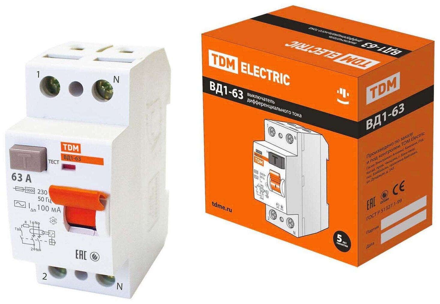 RCD differential switch VD1-63 2P 50A 100mA TDM SQ0203-0014