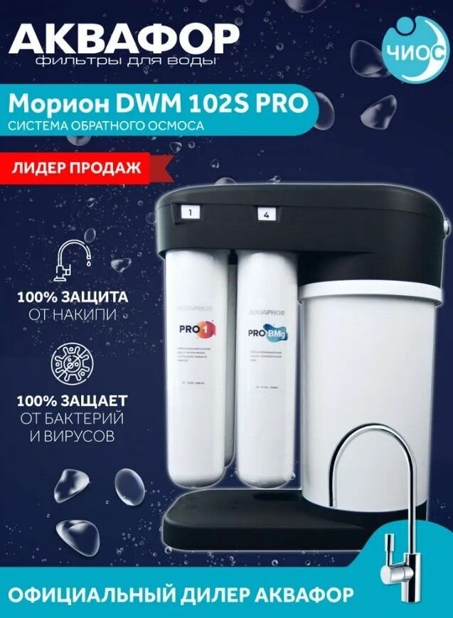 Delivery set: replaceable filter module Pro 1 - 1 pc., replaceable filter module Pro 2 - 1 pc., replaceable membrane module Pro 100 - 1 pc.; replaceable filter module Pro BMg - 1 pc., water purifier housing - 1 pc., connecting