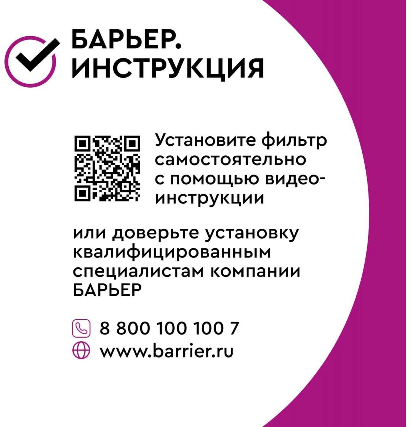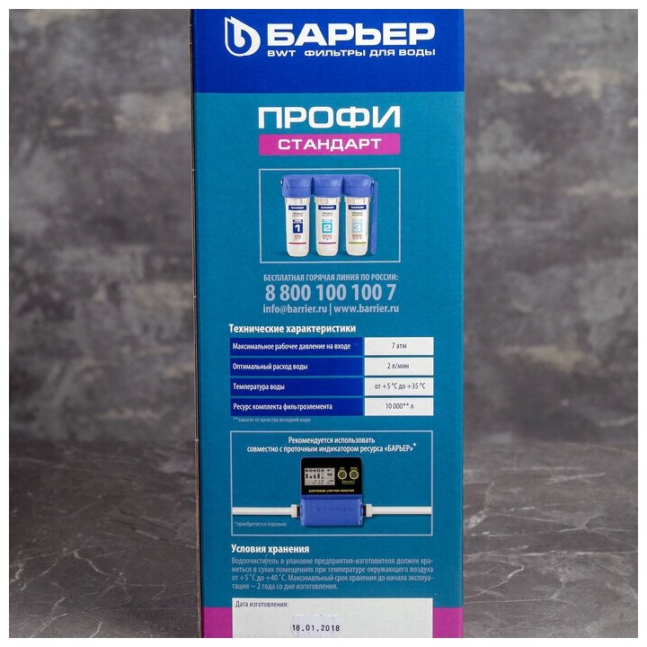 Complete set: water purifier assembled with a set of filter elements; faucet for clean water with gaskets, washers, nut; connecting tubes, 1 m 2 pcs.; plastic key to replace filter elements; faucet fitting for