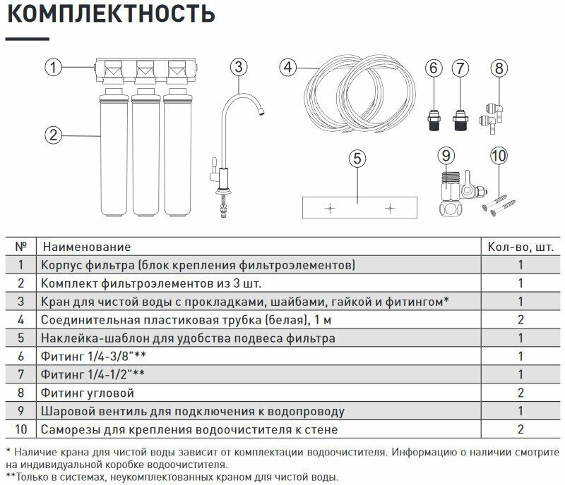 Filter type: under the sink system, type: filter, cleaning functions: ion exchange, mechanical filtration, iron removal, free chlorine removal, features: water connection, number of cleaning stages: 3, type �