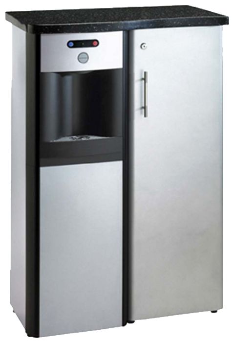 Hot water 87-95°C, cold water 3-12°C; instant extra-heating of water; the volume of the hot water tank is 1.5 liters, cold 4.2 liters; reverse osmosis - add. option; additional cabinet has 3 removable metal shelves and closed