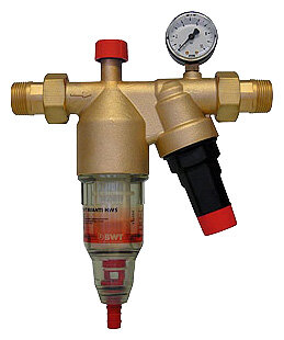 Contact filter with backwash, check valve and pressure reducer; adjustable outlet pressure 1.5-6 bar