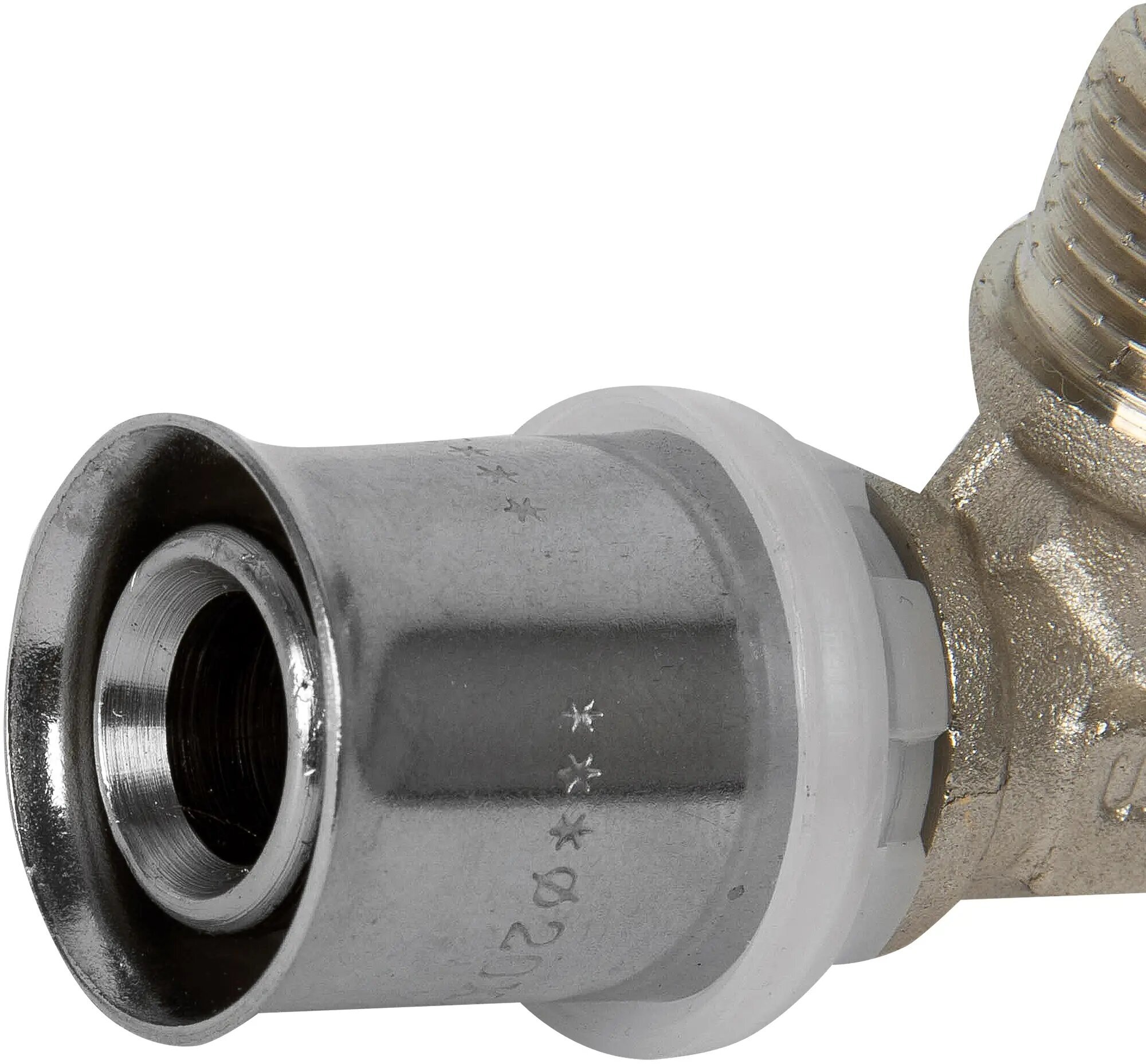Type: tee, connection type: press-thread, connection: male, press fitting profile: TH, thread diameter: ¾, pipe diameter: 20 mm, pipe thickness: 2 mm, material: nickel-plated brass, with seal, combined