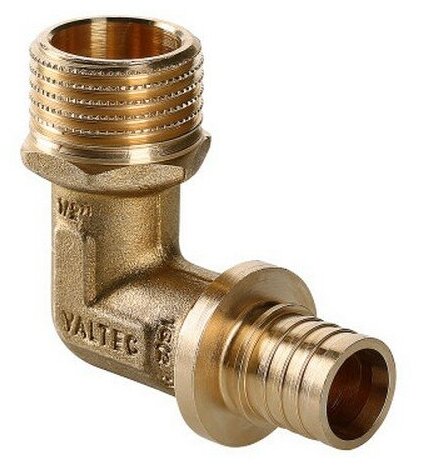 Type: elbow 90°, connection type: axial - thread, connection: male, thread diameter: ¾", pipe diameter: 20 mm, pipe thickness: 16, 4.4 mm, material: brass, combined