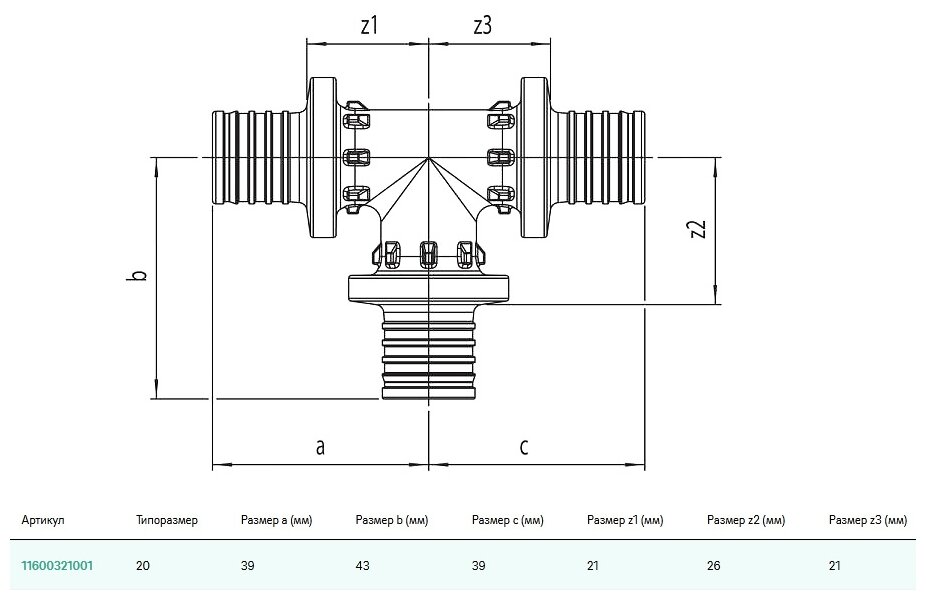 Type: tee, connection type: axial, connection: male, press fitting profile: PX, thread diameter: ¾", pipe diameter: 20 mm, material: polyphenylsulphone PPSU