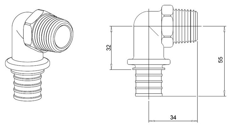 Elbow adapter with external thread Rehau Rautitan MX 25-R 3/4