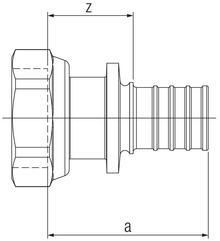 Type: adapter, connection type: axial - thread, connection: male / female, thread diameter: 2 3/8", pipe diameter: 63 mm, pipe thickness: 7 mm, 8, material: brass, with union nut, combined