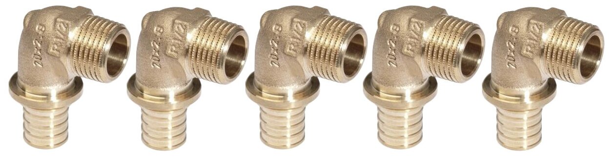 Type: elbow 90°, connection type: axial - thread, connection: male, thread diameter: ½, pipe diameter: 20 mm, material: brass, combined