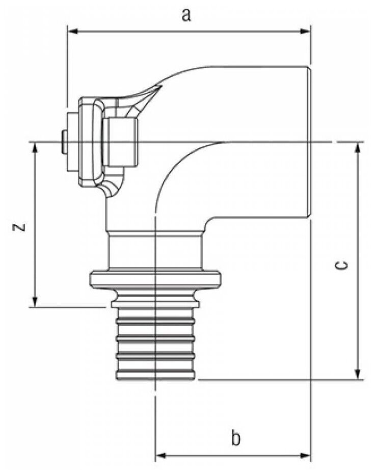 Type: elbow 90°, connection type: axial - thread, connection: female, thread diameter: ½", material: bronze, with fixing, adapter, detachable