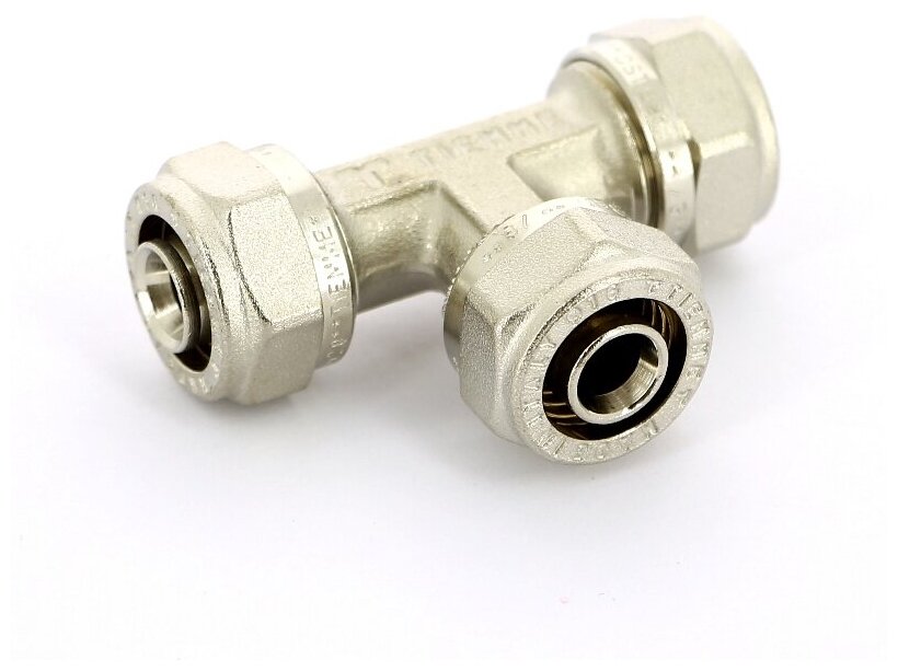 Type: tee, connection type: collet crimp, thread diameter: 1", pipe diameter: 26 mm, pipe thickness: 3 mm, material: brass