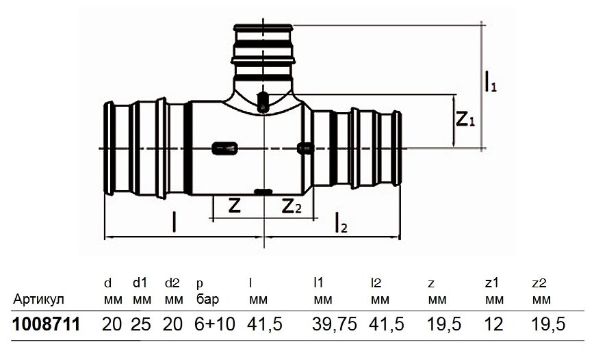 Description: Type: tee, connection type: axial, connection: male, pipe diameter: 20 mm, 25 mm, material: PPSU, reducer