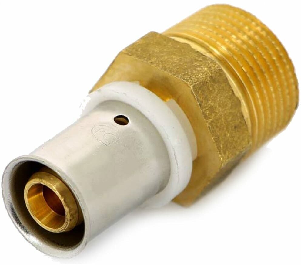 Type: coupling, connection type: press-thread, connection: male, press fitting profile: TH, thread diameter: ½", pipe diameter: 16 mm, pipe thickness: 2 mm, material: brass, with seal, combined
