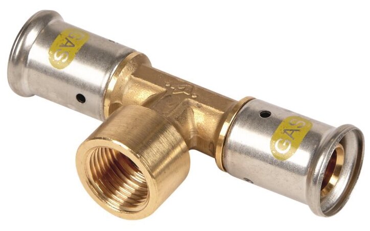 Type: tee, connection type: press-thread, connection: female, thread diameter: ½, pipe diameter: 26 mm, material: brass, with seal, combined