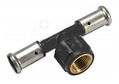 Type: tee, connection type: press-thread, connection: female, thread diameter: ¾", pipe thickness: 2 mm, material: black cast iron, with seal, combined