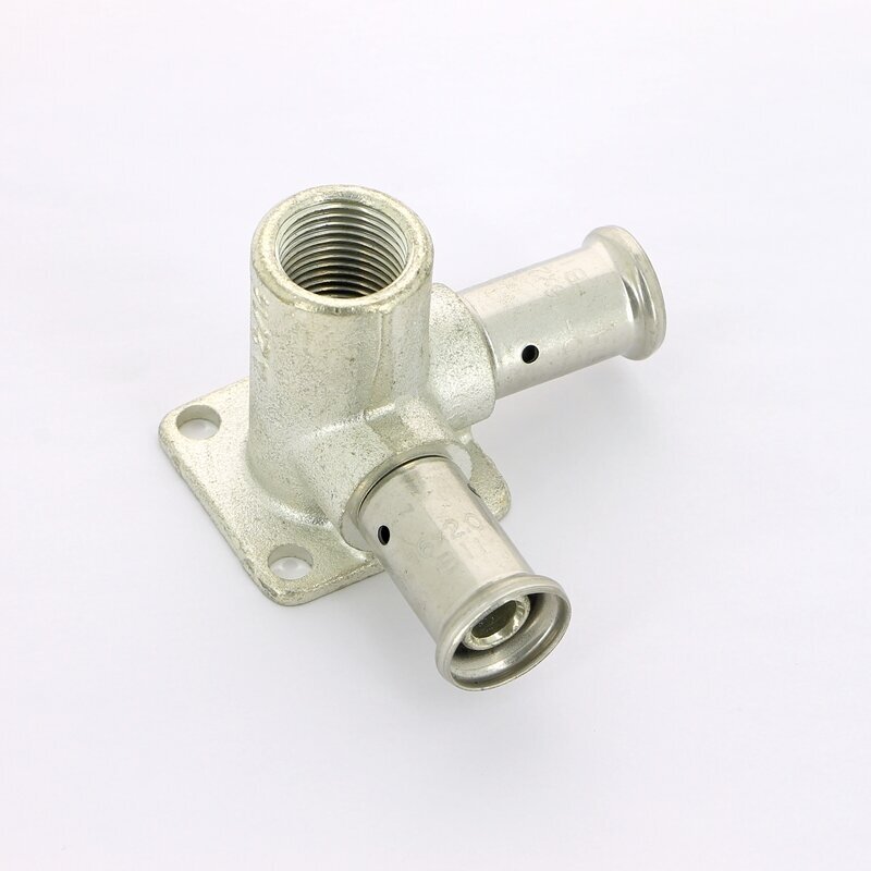 Type: water socket, connection type: press-thread, connection: female, press fitting profile: TH, thread diameter: ½", pipe diameter: 16 mm, pipe thickness: 2 mm, material: brass, with fixing, adapter, combined