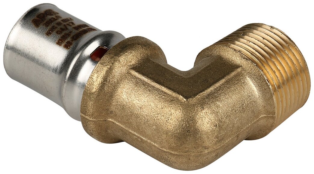 Type: elbow 90°, connection type: press-thread, connection: male, thread diameter: ½, pipe diameter: 20 mm, material: brass, combined