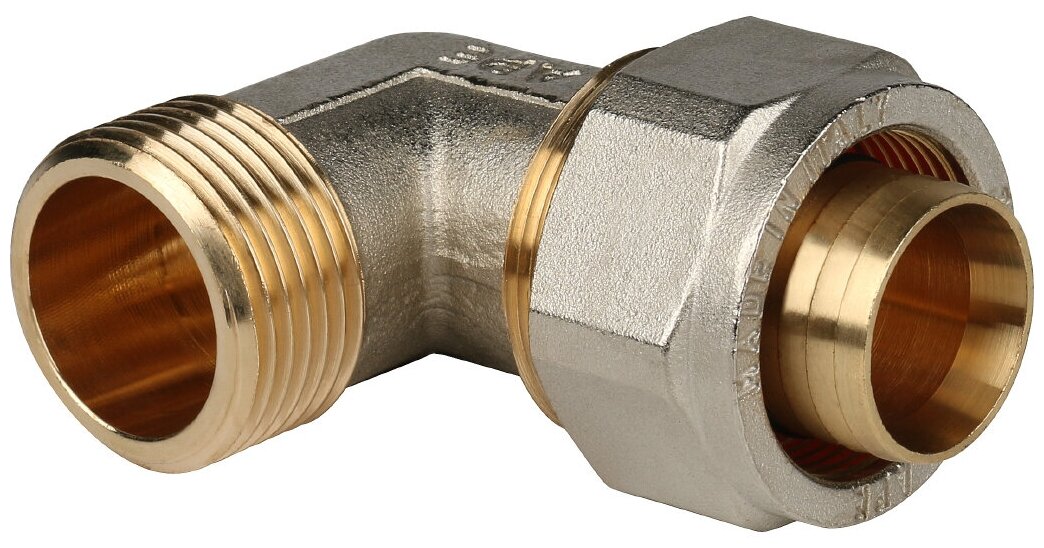 Type: elbow 90°, connection type: crimp - thread, connection: male, thread diameter: 1, pipe diameter: 32 mm, material: brass, split, with union nut, with seal, combined