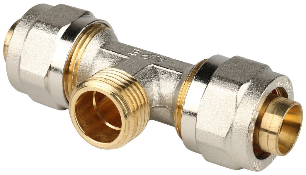 Type: tee, connection type: crimp - thread, connection: male, thread diameter: ½", pipe diameter: 20 mm, material: brass, split, with union nut, with seal, combined
