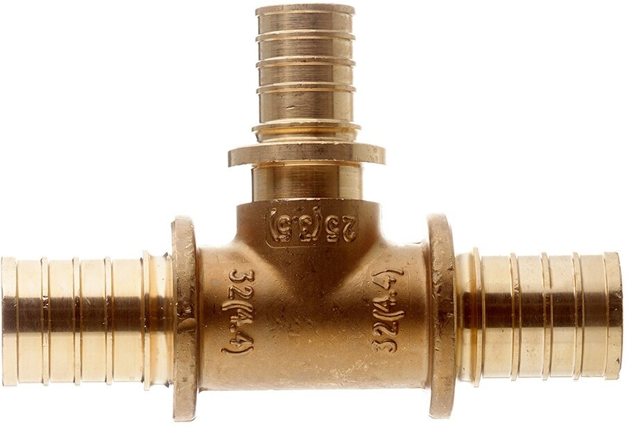 Type: tee, connection type: axial, connection: press fitting, thread diameter: 2 ½", pipe diameter: 25 mm, 32 mm, pipe thickness: 3.5 mm, 4.4 mm, material: brass, adapter