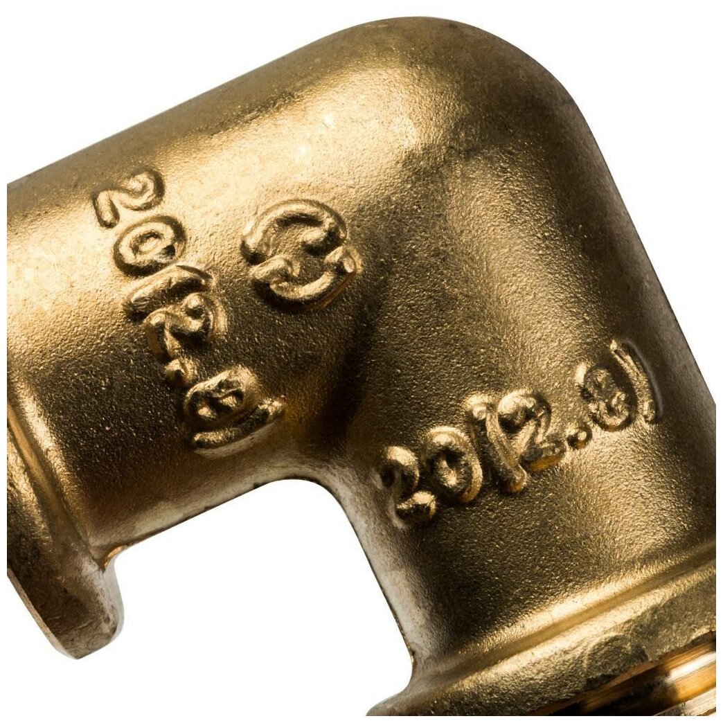 Type: elbow 90°, connection type: axial, connection: press fitting, thread diameter: 2 ½", pipe diameter: 20 mm, pipe thickness: 2.8 mm, material: brass