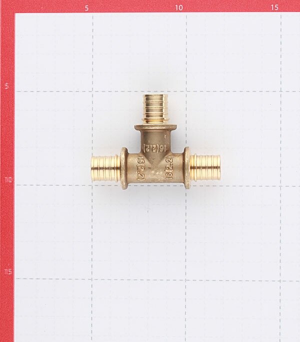 Type: tee, connection type: axial, connection: female, Press fitting, thread diameter: 2 ½", pipe diameter: 16 mm, pipe thickness: 2.2 mm, material: brass