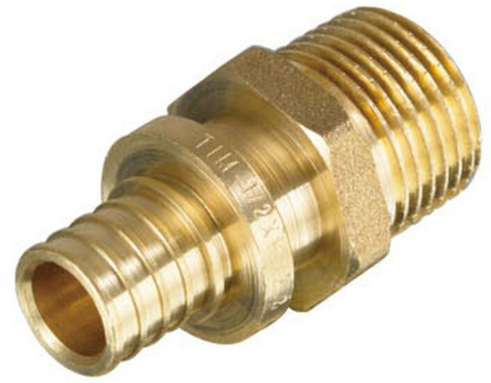 Type: coupling, connection type: axial - thread, connection: male, thread diameter: ½", pipe diameter: 20 mm, pipe thickness: 2.8 mm, material: brass, transition, combined