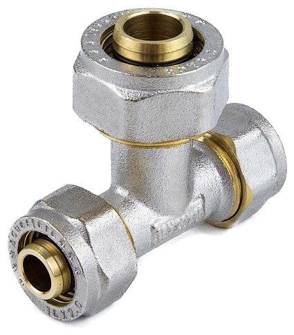 Type: tee, connection type: collet crimp, connection: female, pipe diameter: 16 mm, 32 mm, material: nickel-plated brass, adapter