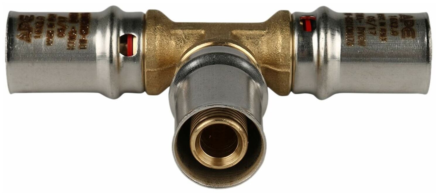 Type: tee, connection type: press, connection: female, pipe diameter: 16mm, pipe thickness: 2mm, material: brass