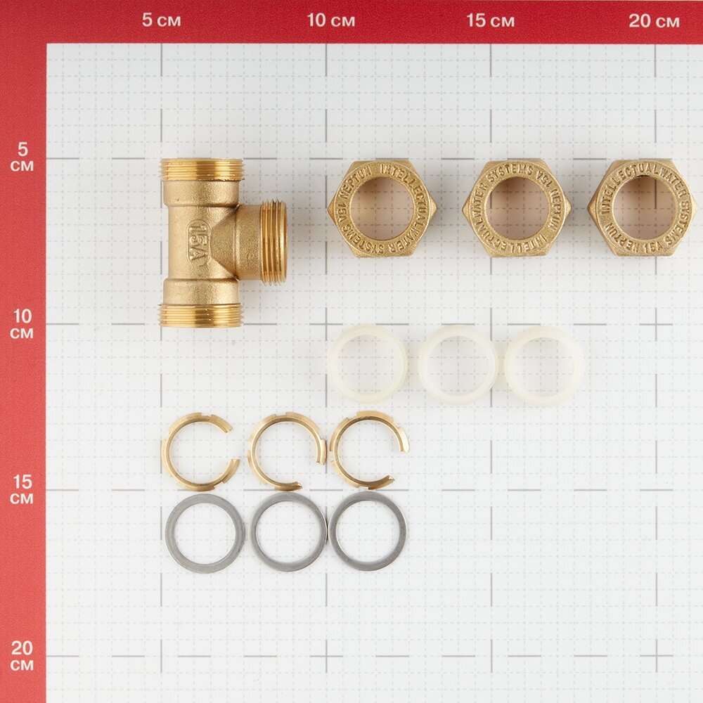 Tee Stahlmann Easy Fix crimp brass detachable 15x15x15EF, for corrugated stainless steel pipes 15A