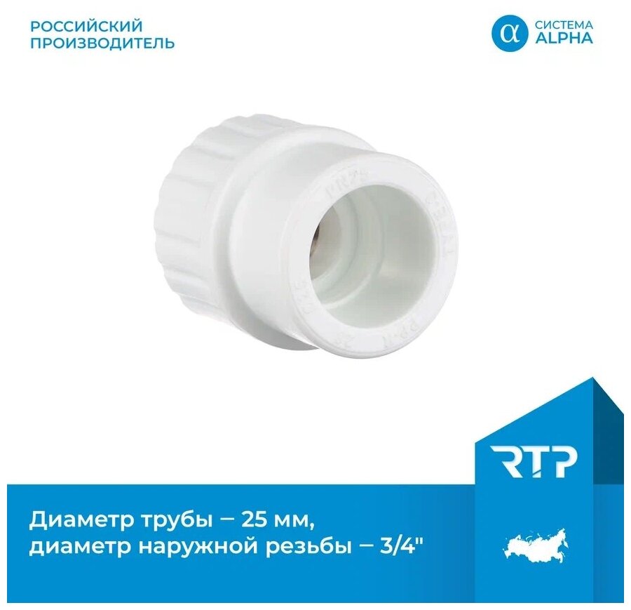 Type: coupling, thread type: male, fitting type: combined, maximum working temperature: 95 °C, connection: welding - thread, maximum working pressure: 25 atm