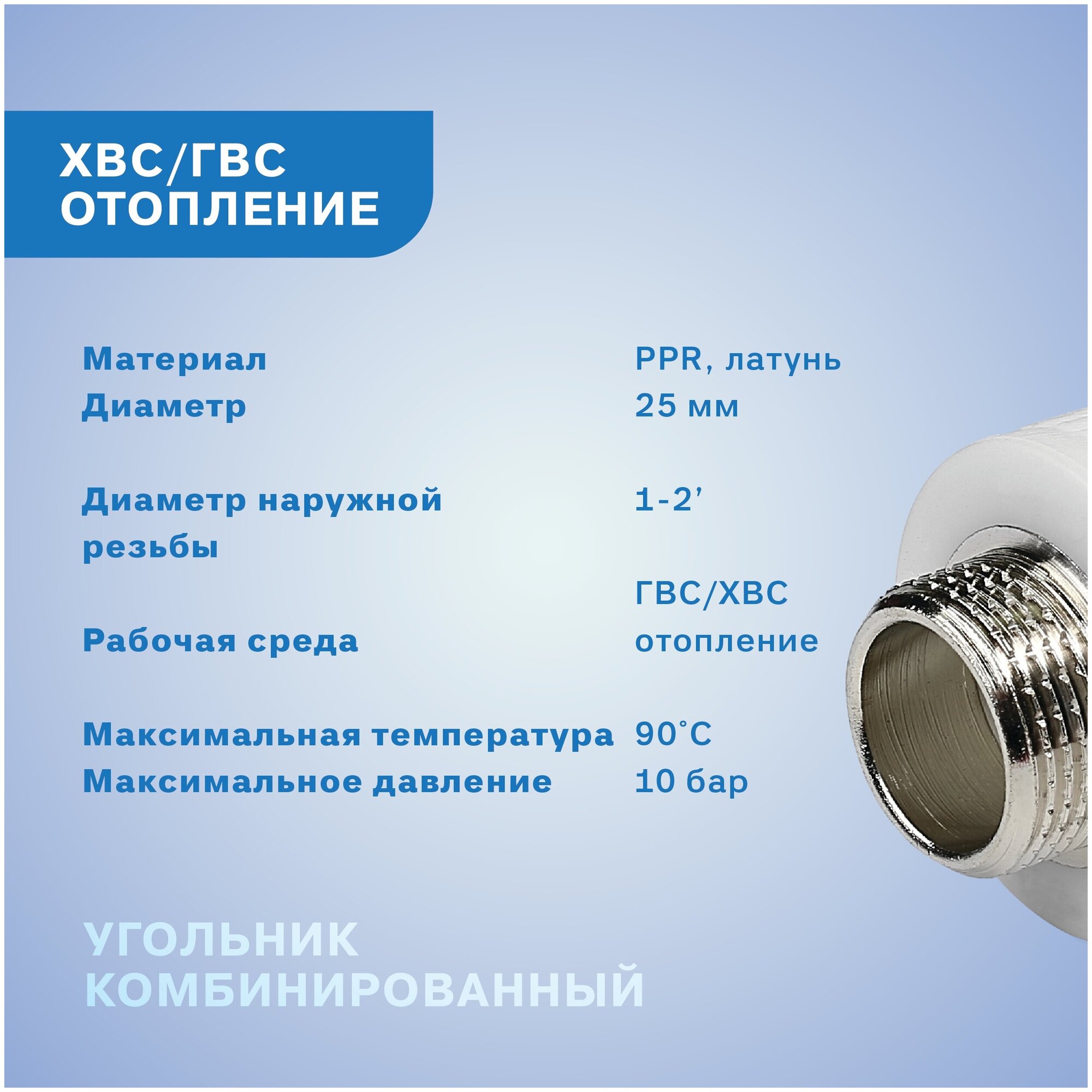 Type: angle, angle: 90 °, thread type: male, fitting type: combined, maximum working temperature: 90 °C, connection: welding - thread