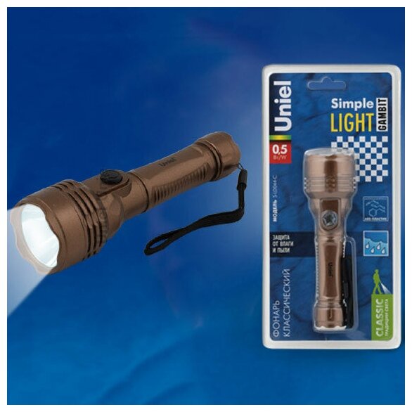 Type: hand torch, light source: LEDs, power supply: batteries, luminous flux: 35 lm, lighting range: 40 m, maximum operating time: 12 h, housing material: plastic