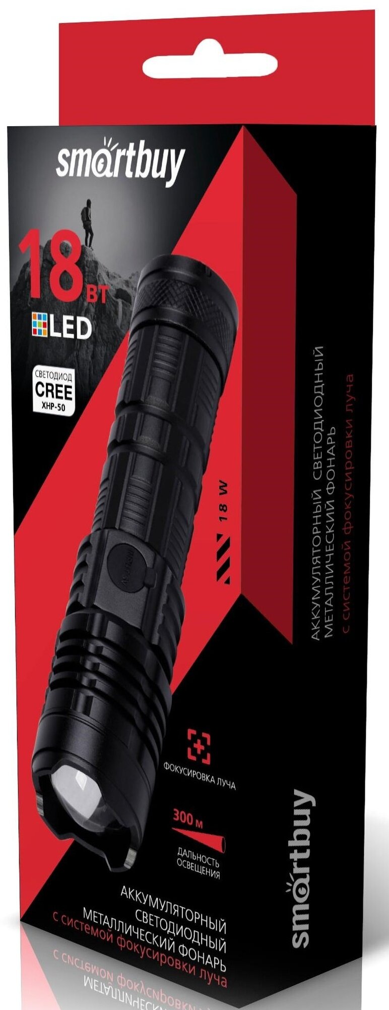Type: hand lamp, light source: LEDs, power type: built-in accumulator, from batteries, power consumption: from USB, from the car's on-board network, from the mains, features: charge indication, stroboscope, luminous flux